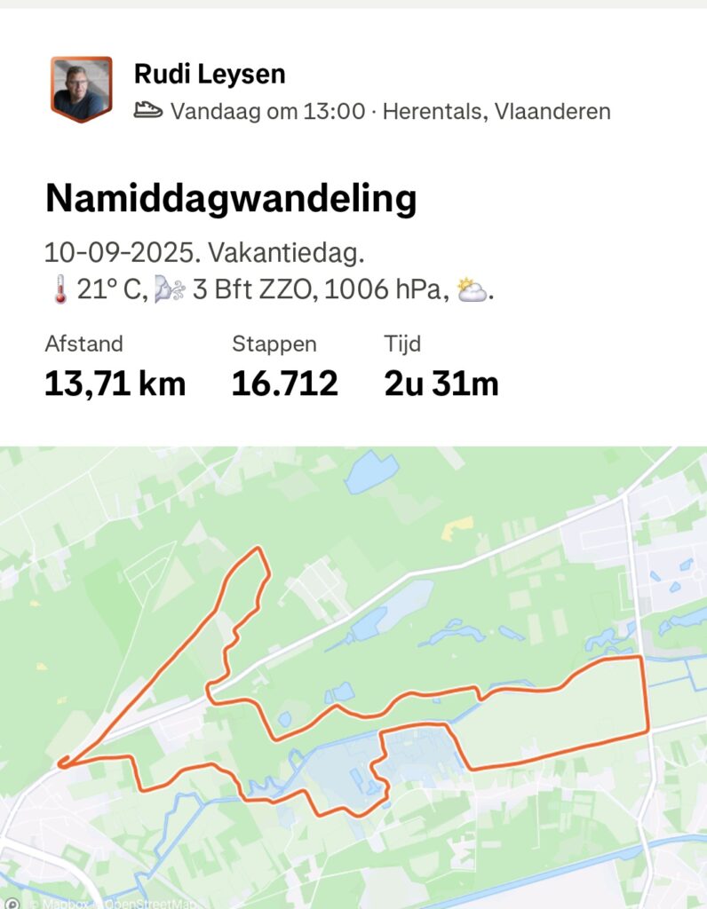 Na ruim twee uur, je verliest hier je tijdsbesef, voelde ik me herboren. Er is iets magisch aan de combinatie van rust, natuur en het eerste beetje herfst. Het Olens Broek is geen plek van spektakel, maar van kleine wonderen: een sprankelende waterdruppel, een bijna onhoorbare vogelroep, een vriendelijke groet van een onbekende. Zo’n namiddagwandeling is geen groot avontuur, maar wel een die je niet snel vergeet.